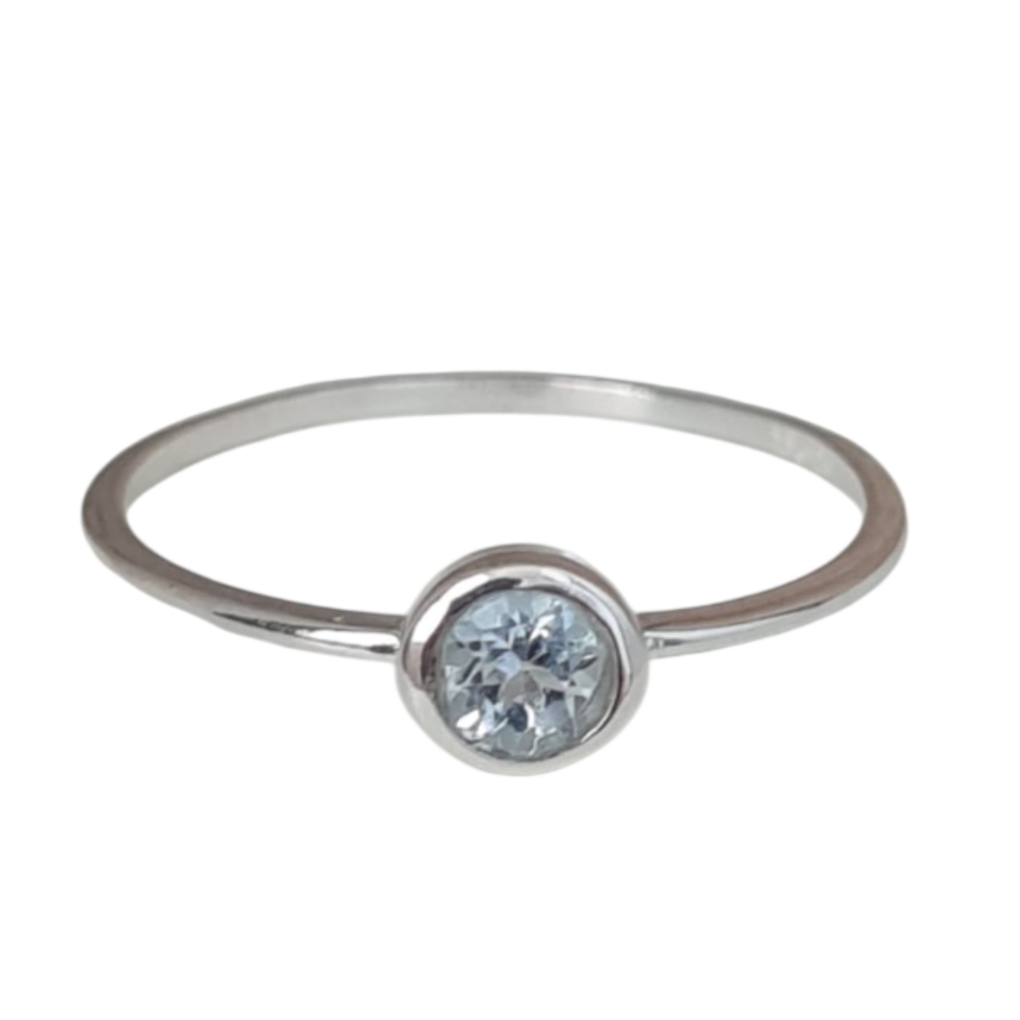 Anel Água Marinha Redondo de Prata 925
