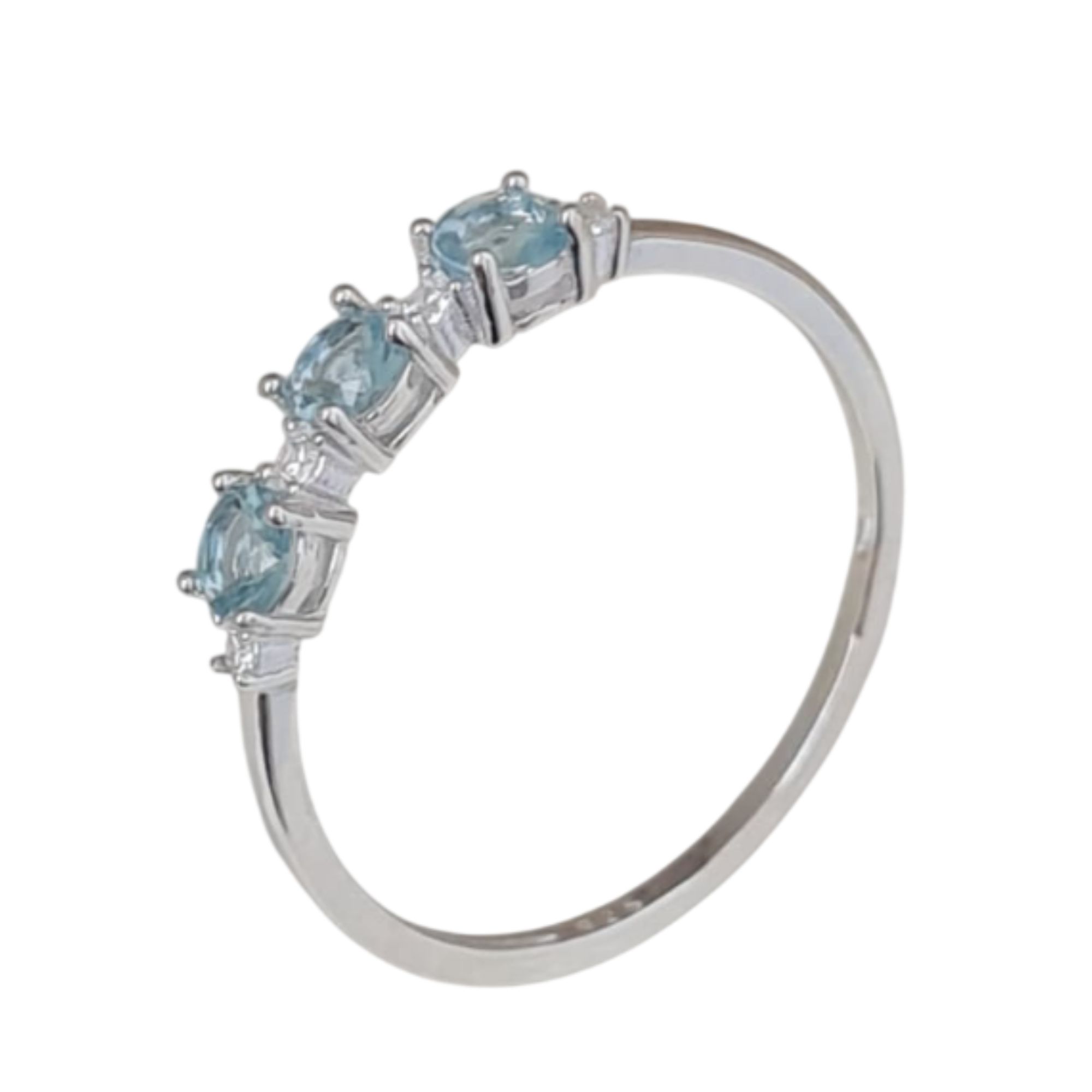 Anel Água Marinha Três pedras de Prata 925