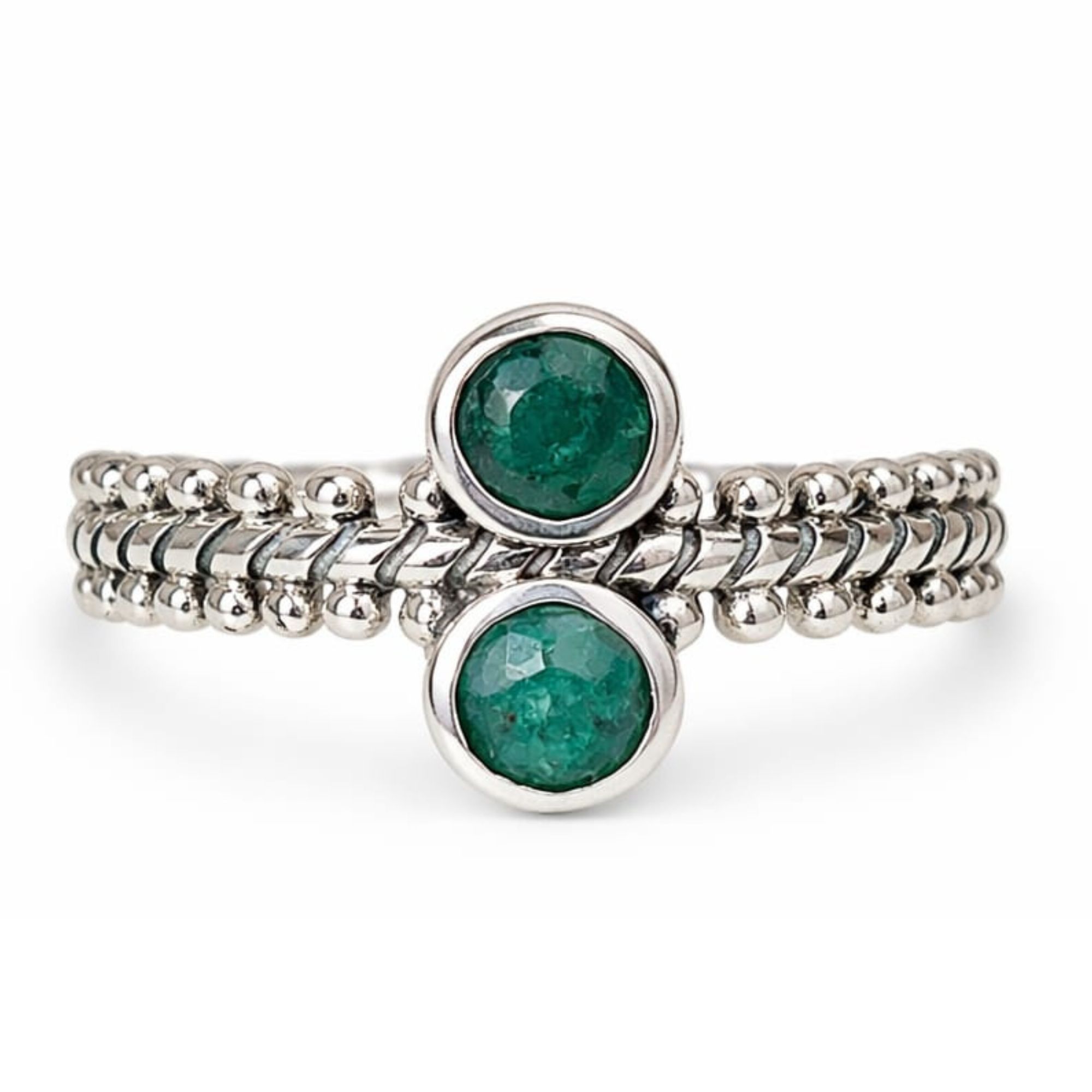 Anel Esmeralda Duplo de Prata 925