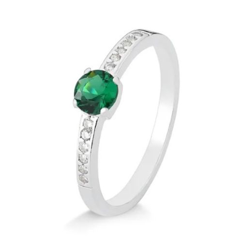 Anel Esmeralda Solitário Formatura Prata 925