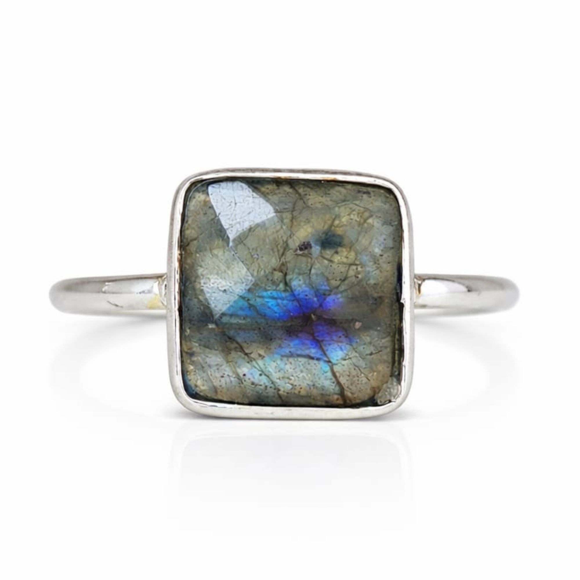 Anel Labradorita Quadrado de Prata 925