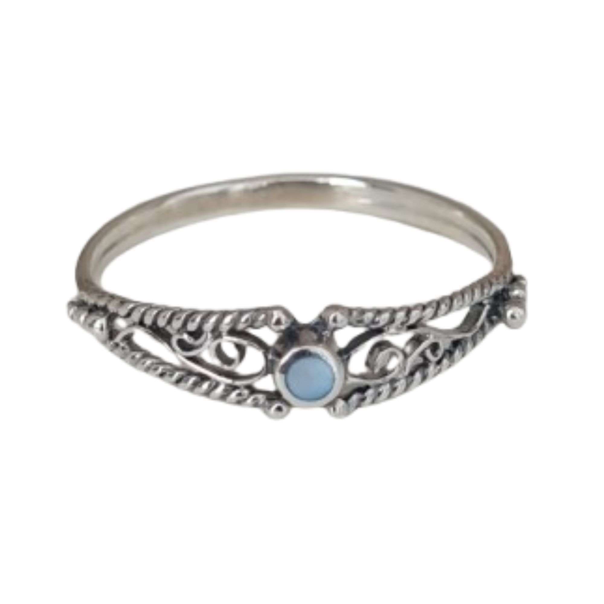 Anel Madrepérola Azul Indianinho Prata 925