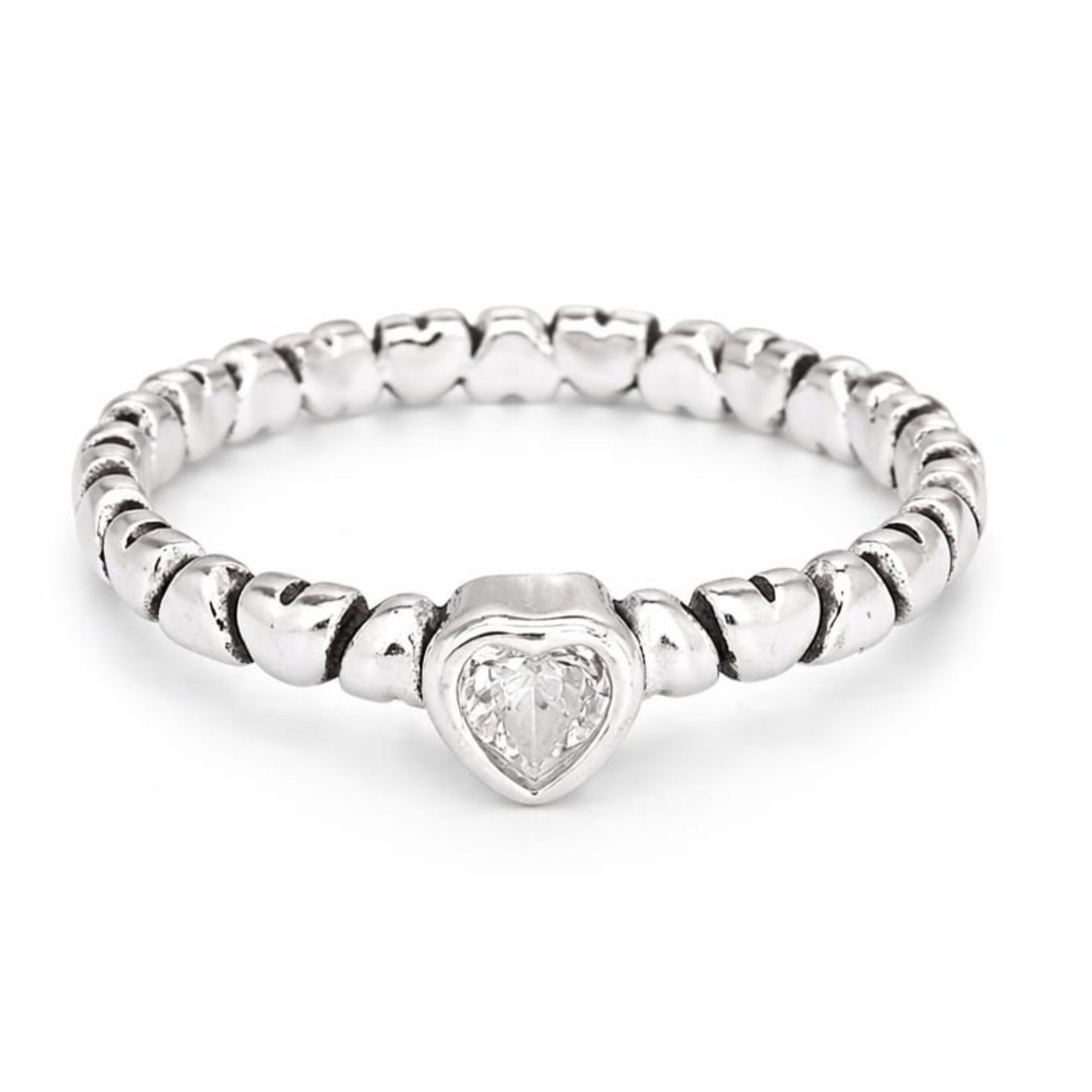 Anel Solitário Corações Prata 925