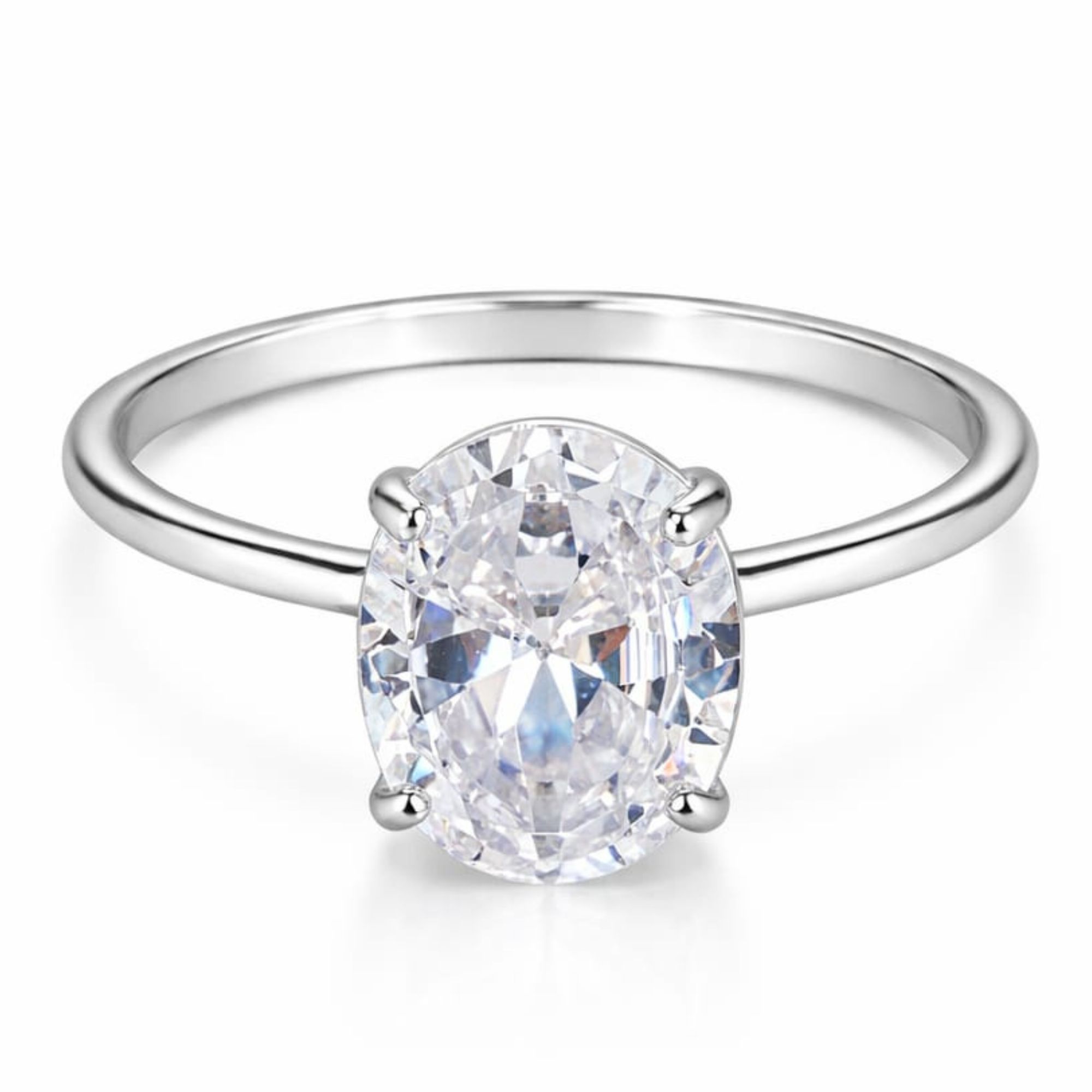 Anel Solitário Oval 8 MM Prata 925