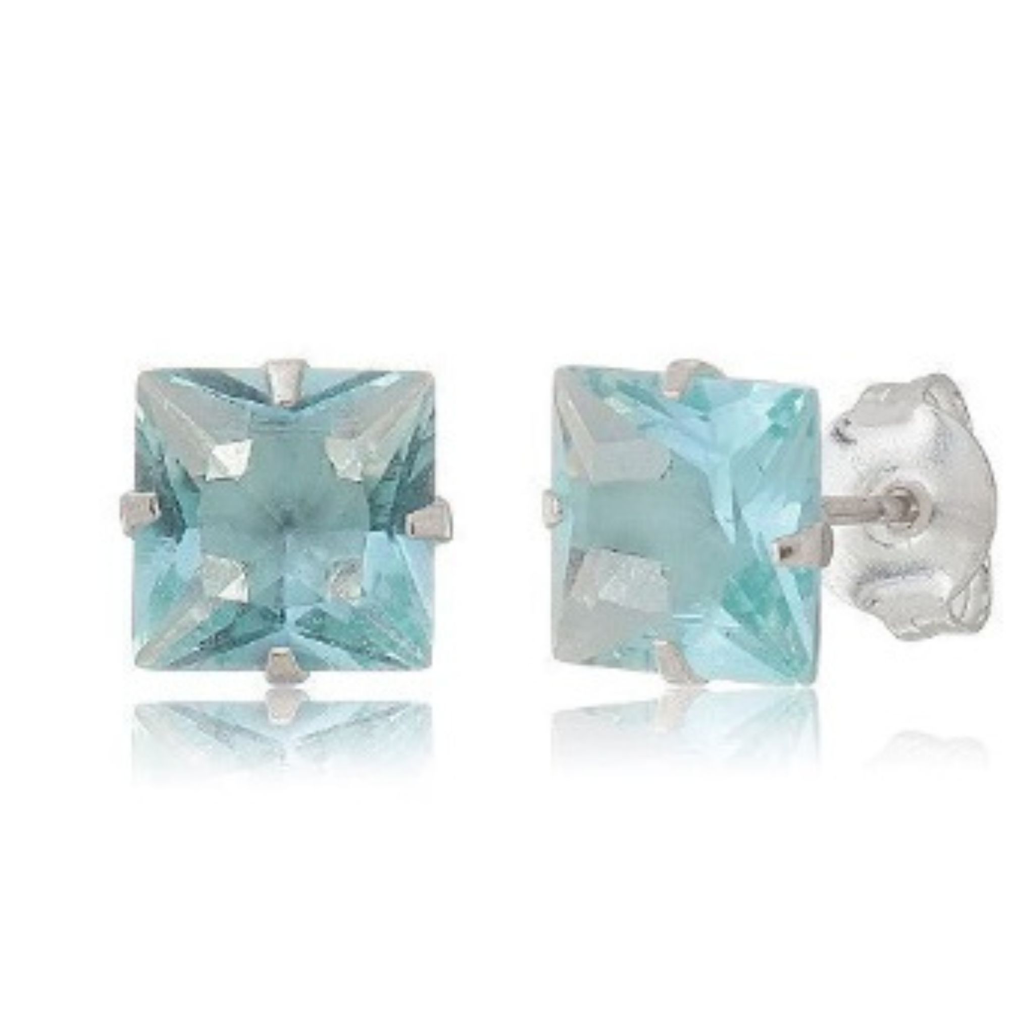 Brinco Água Marinha Quadrado de Prata 925