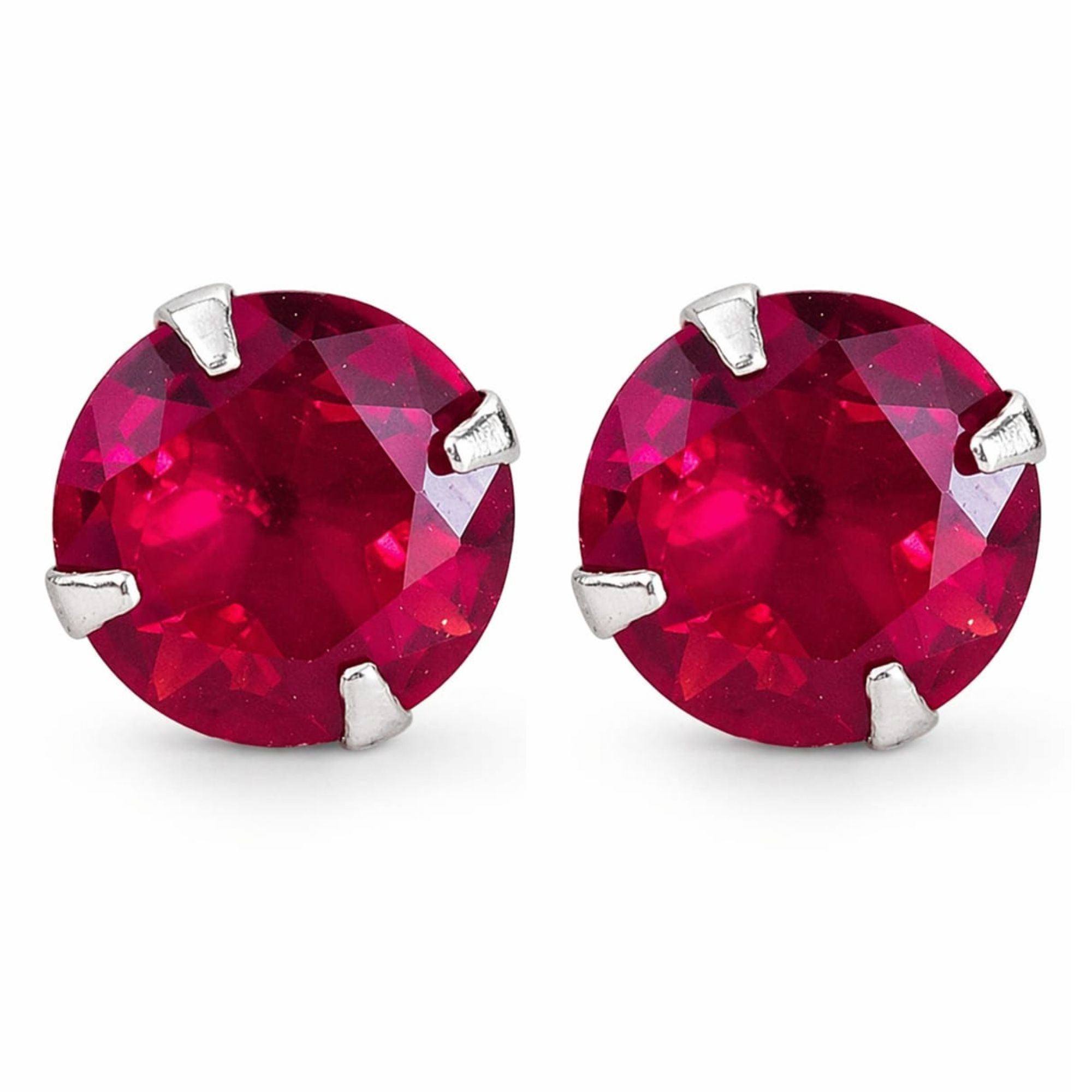 Brinco Rubi Zircônia Redondo 8 MM de Prata 925