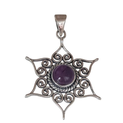 Pingente Ametista Mandala de Prata 925