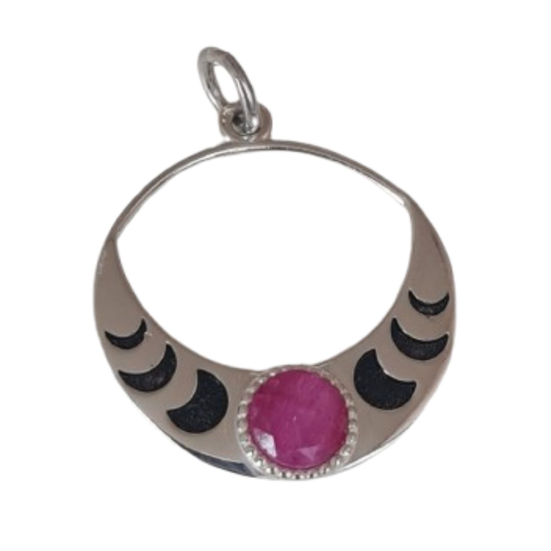 Pingente Rubi Indiano Fases da Lua Prata 925